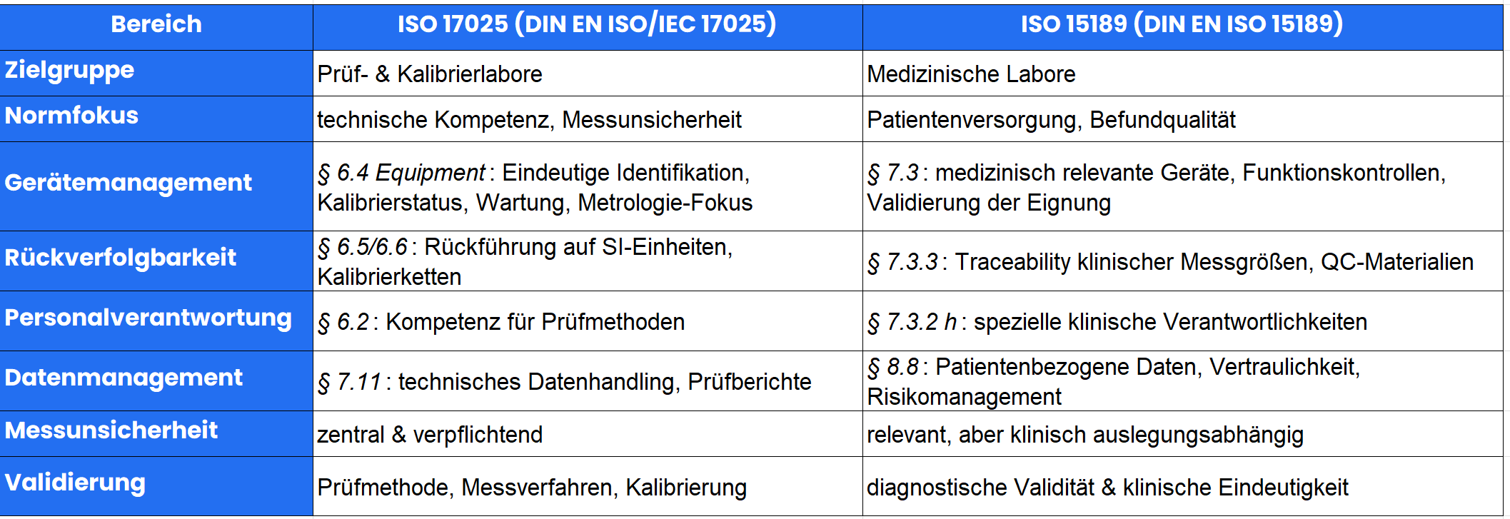 ISO 17025 vs. ISO 15189 - Areas of application and target groups